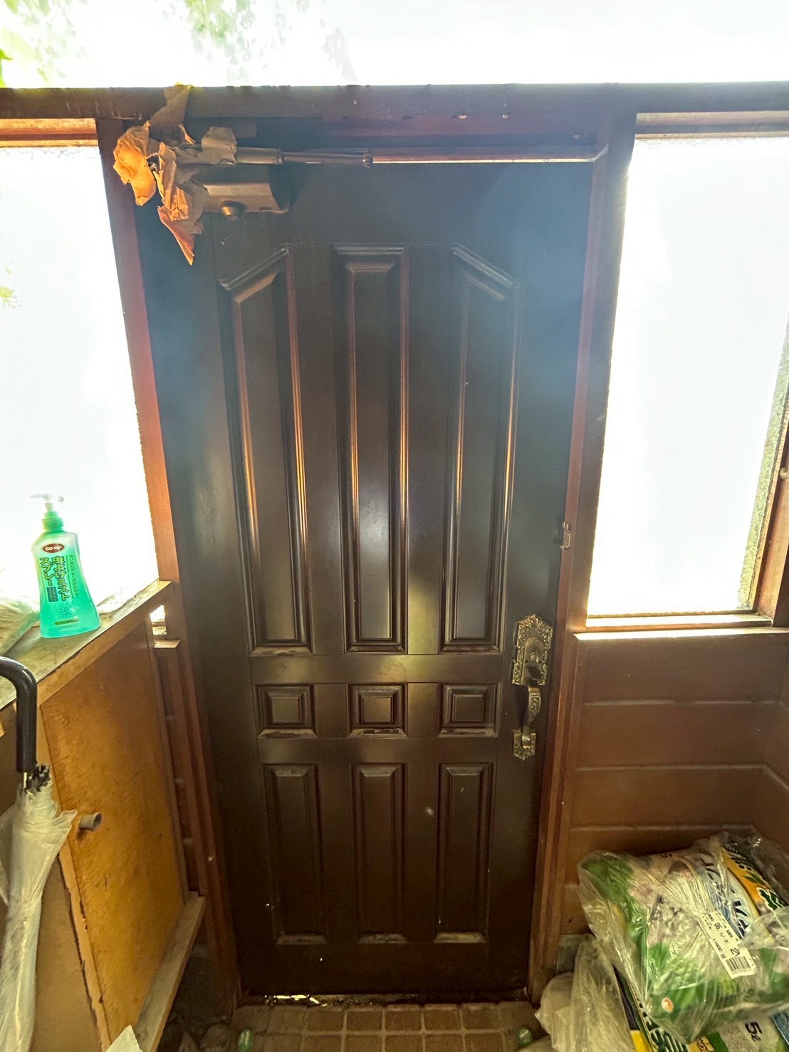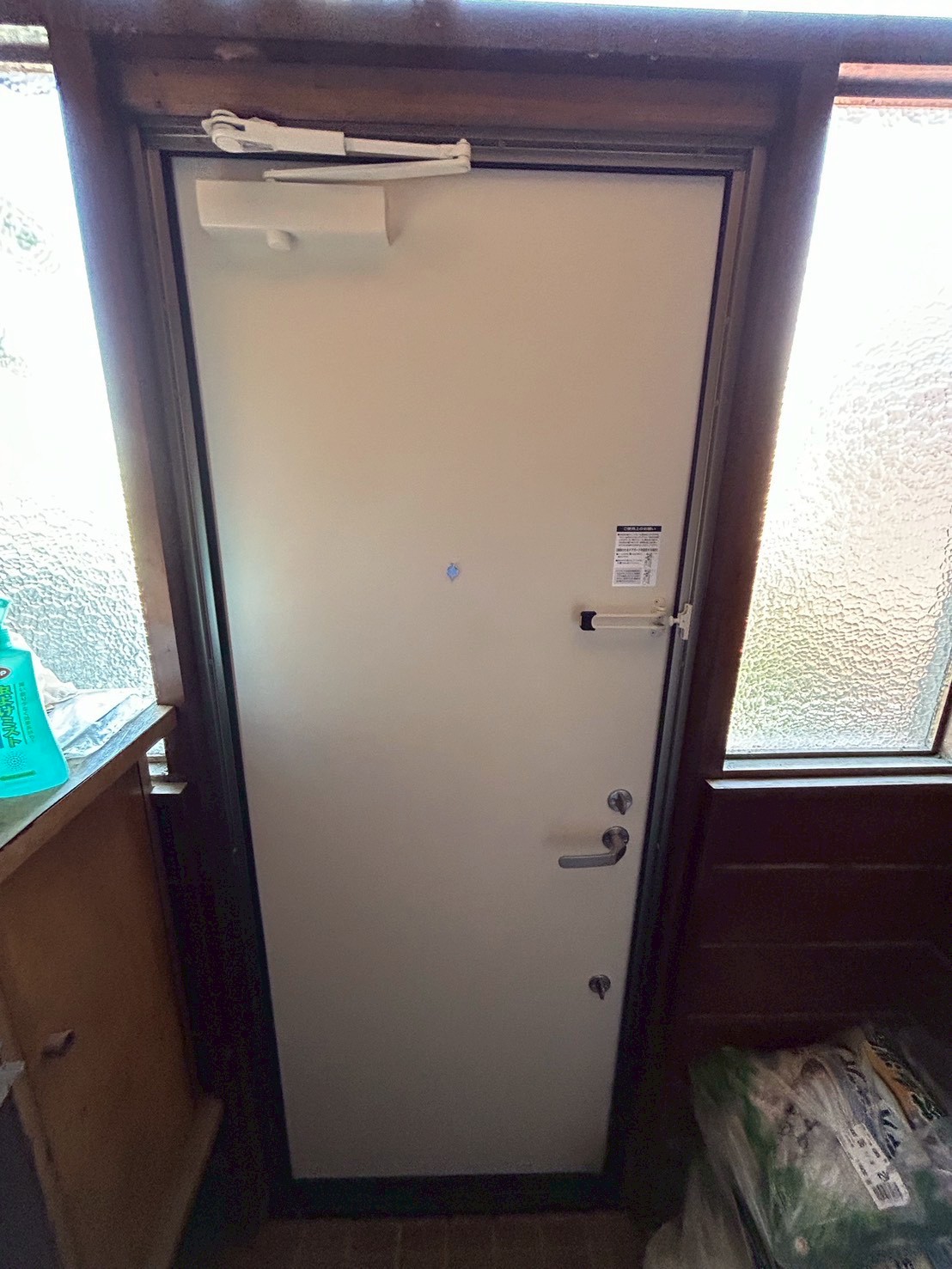 痛んでいたドアを新しいものへ変えました。